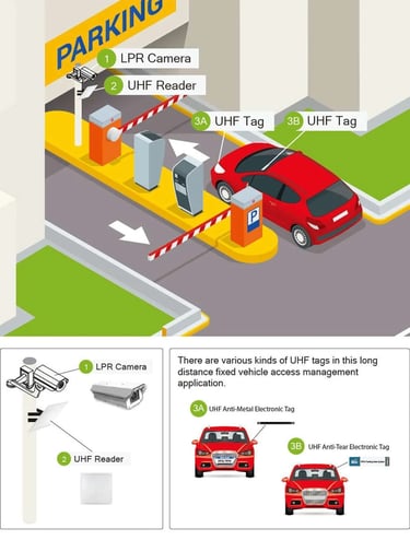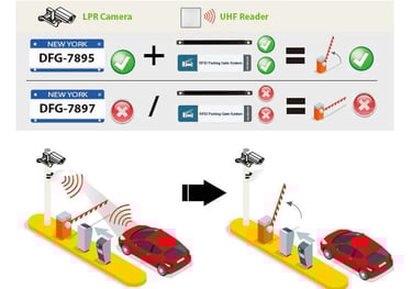 Dual number plate authentication is a Multi-factor authentication to use of several authentication techniques together. Once the vehicle is located at the entrance of the carpark lot, both of the UHF reader and LPR Camera will start to recognise the UHF Tag and the number plate on the vehicle. If the verification of the number plate and the UHF tag is valid, the car park barrier will lift for access, otherwise no access will be allowed.