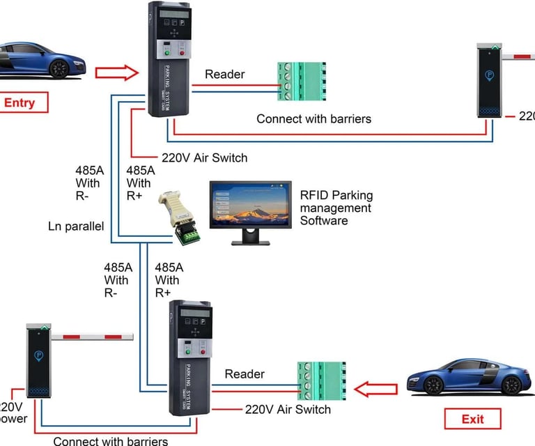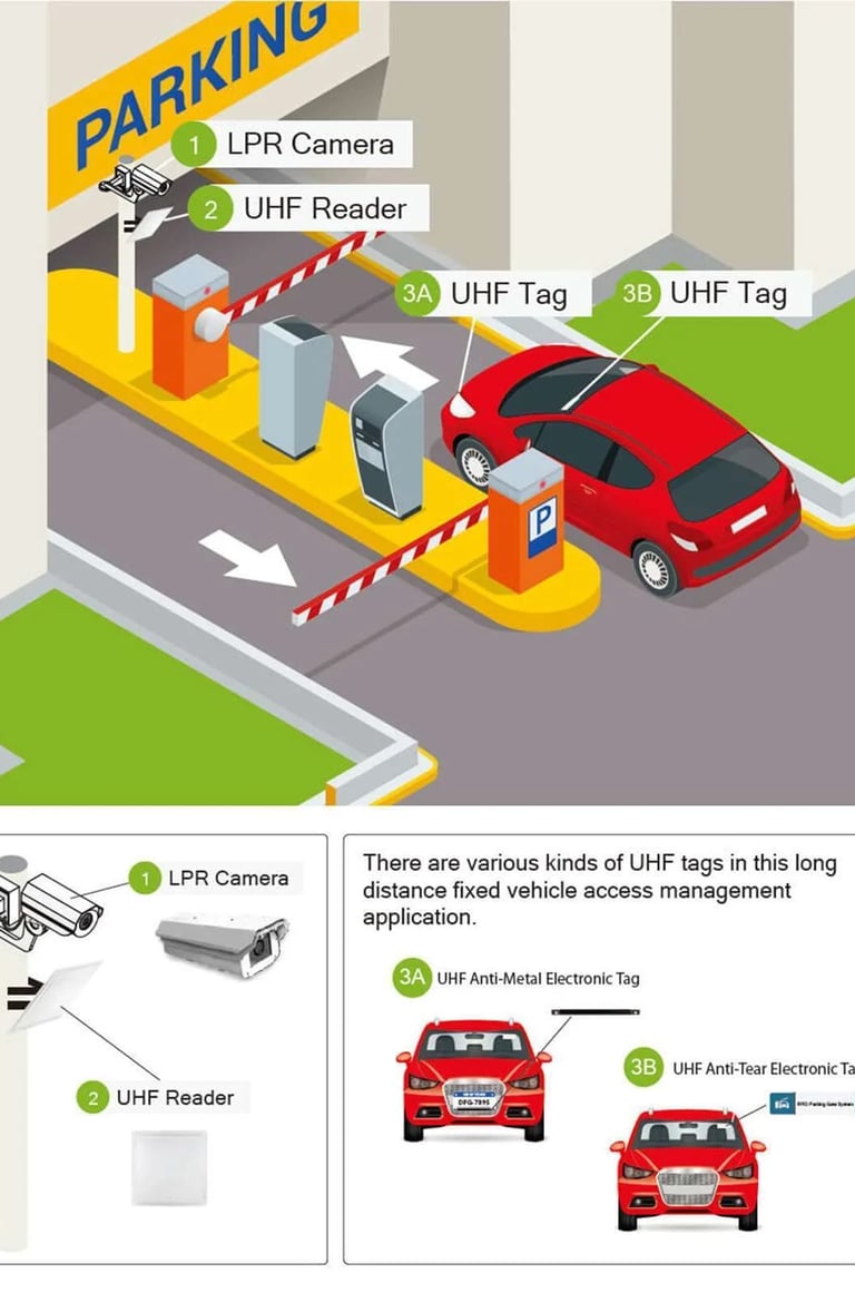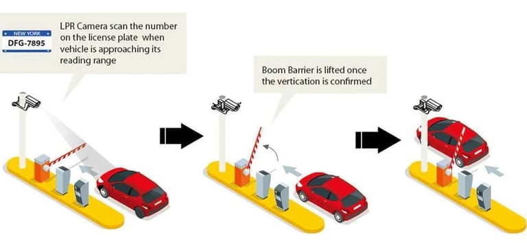 Access Control: Uses automated barriers, gates, and License Plate Recognition (LPR) cameras to manage vehicle entry and exit without manual intervention.
