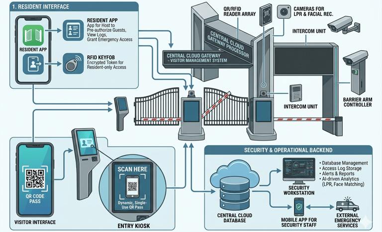 A Visitor Management System (VMS) for a residential compound is a digital platform designed to securely control and monitor the entry of guests, contractors, and delivery personnel. It replaces traditional paper logs with a streamlined, automated workflow that enhances both security and convenience for residents.