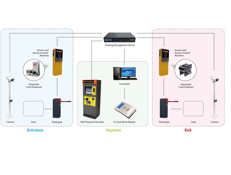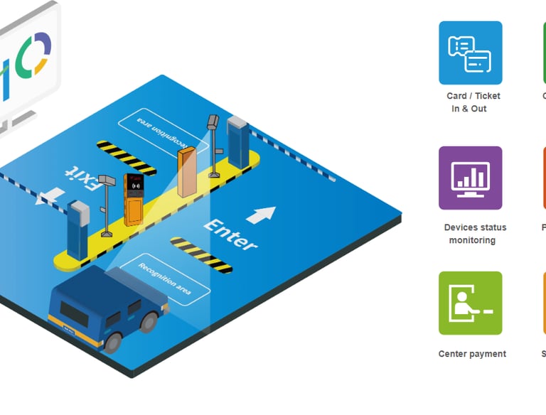 A comprehensive solution that uses cards, tickets, or license plates to identify vehicles entering and exiting the parking lot in real-time. The system provides intelligent management of the parking lot, including permit/rejection, guidance, recording, charging, release, and access control for vehicles and personnel. The system also records data in detail and automatically calculates the amount of the charge. This helps to ensure safety management of on-site vehicles and charges.