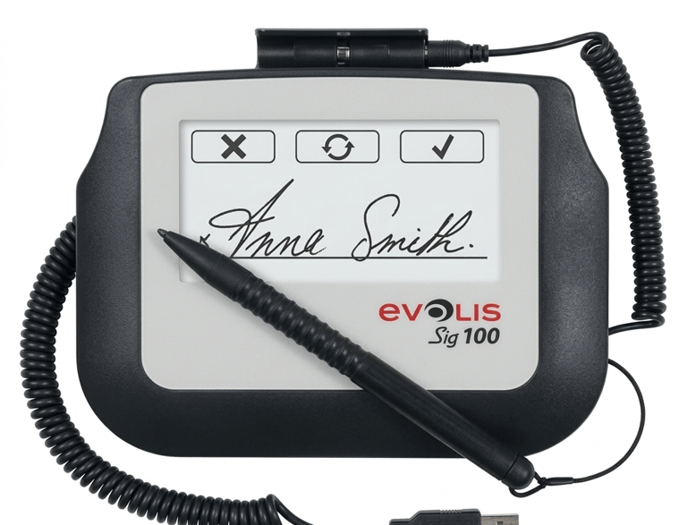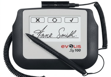 Evolis signature pads use resistive technology (signature captured with a stylus or finger) or ERT technology (pad reacts only to a stylus)