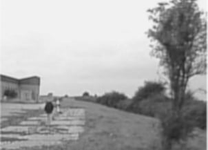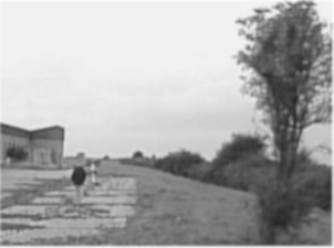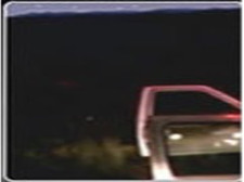 This is the same image captured using a visible band camera. The person is not visible at all, and the background is very dark. However, the car's interior light allows much greater definition of the car door.
